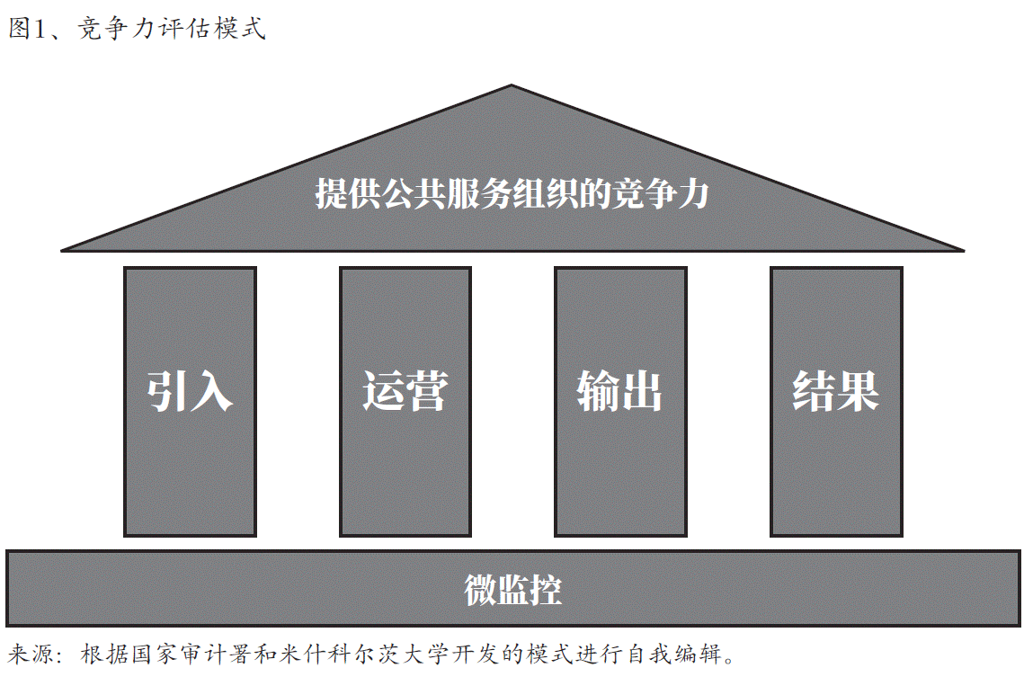 该模式的出发点是公共服务组织的竞争力。该模式的目的是找到提高竞争力 的干预措施。在这一模式中,业绩计量不是目标,而是评估竞争力的手段,也是 有效干预的反馈工具,可用于确定干预的必要性,和它的效果。公共服务组织的 竞争力模式是由米什克尔茨大学经济系的大学研究人员与业绩管理研究中规定的 原则一起制定的(图1、)。