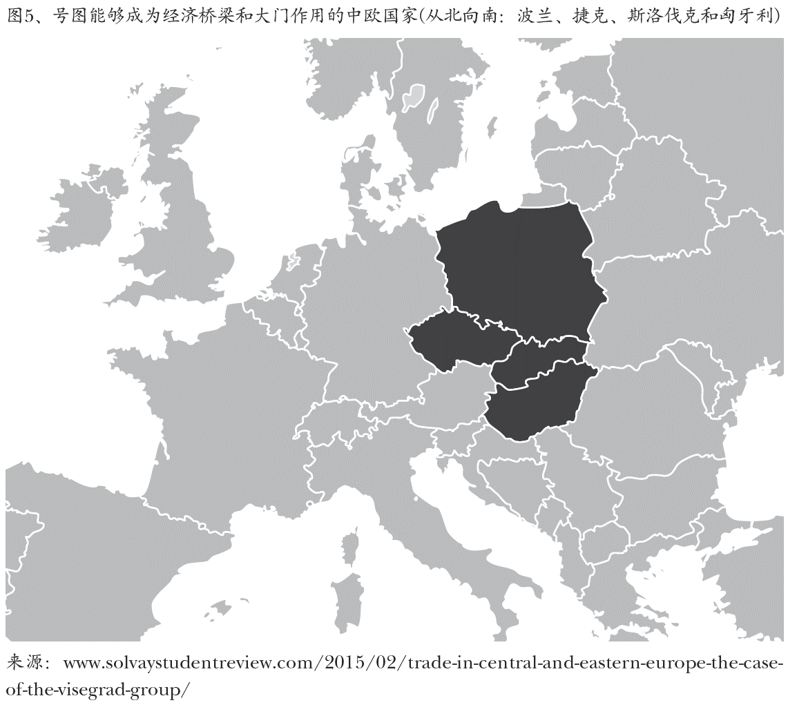 立陶宛和拉脱维亚在新丝绸之路线路上位置太为偏北。接了位于中欧区域的 中部。斯洛伐克在洲际间线路来看不具备大型繁忙的过境点。只剩下波兰和匈牙 利是欧盟内的资金和劳动力流动自由传统的申根国家。两个国家都具备泛欧洲交 通渠道的过境点(波兰为向东,匈牙利为向东和向南),都适合承担经济大门的 角色。而且不可忽视在起草外交战略时的环境,波兰和匈牙利已经具备千年的友 好关系,这在欧盟成员国中是很少见的。